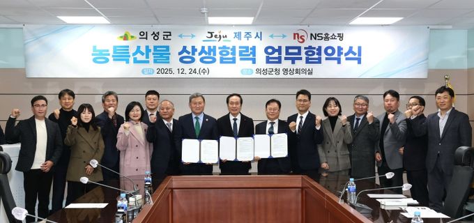 [ 중앙뉴스미디어 ] 의성군은 지난 24일 제주시 및 ㈜NS쇼핑(대표이사 조항목)과 우수 농특산물 유통 확대와 판로 다각화를 위한 상생협력 업무협약을 체결했다고 밝혔다.
