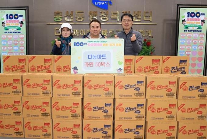 [ 중앙뉴스미디어 ] 의정부시 흥선동행정복지센터는 12월 24일 다농마트가 ‘100일간 사랑릴레이 배턴 잇기’에 동참해 라면 50상자를 기탁했다고 밝혔다.