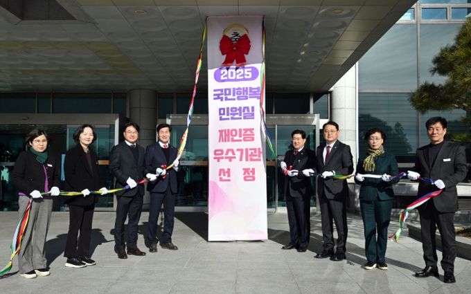 이번 행사는 지난 23일 정부세종청사에서 열린 2025년 민원행정발전 유공 시상식에서 수여받은 국민행복민원실 재인증 현판을 부착하고, 우수기관 선정을 축하하기 위해 마련됐다.