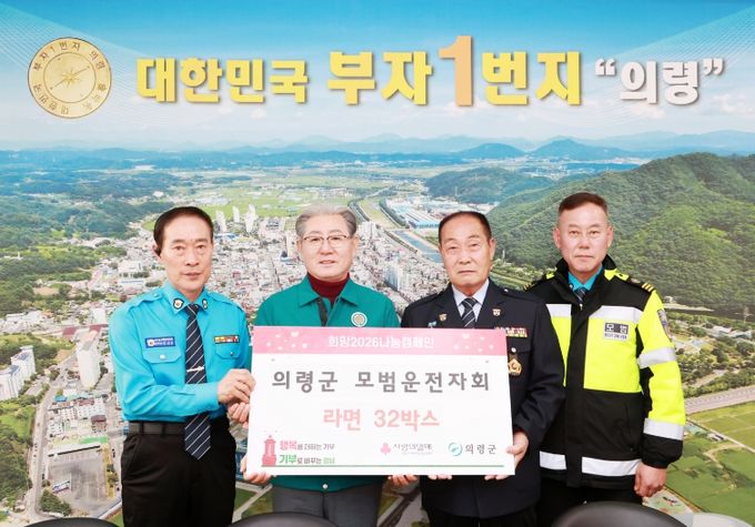 [ 중앙뉴스미디어 ] 의령군은 지난 30일, 연말 이웃돕기를 위해 의령군 모범운전자회가 라면 32박스(100만 원 상당)를 기탁했다고 밝혔다.