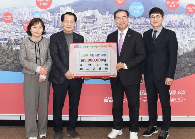 두 대표는 “사상구는 우리 회사가 성장할 수 있었던 기반을 마련해준 지역”이라며 “뜻깊은 나눔에 참여할 수 있어 보람을 느끼며 앞으로지역과 상생하는 나눔 활동을 이어가겠다”고 말했다.