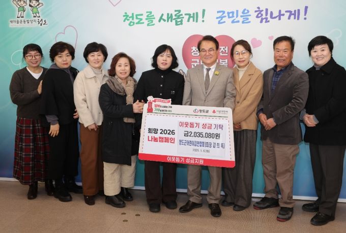 [ 중앙뉴스미디어 ] 청도군 어린이집연합회(회장 김희득)는 지난 6일 '희망2026 나눔캠페인 이웃돕기 성금' 2,035,080원을 청도군에 전달했다.