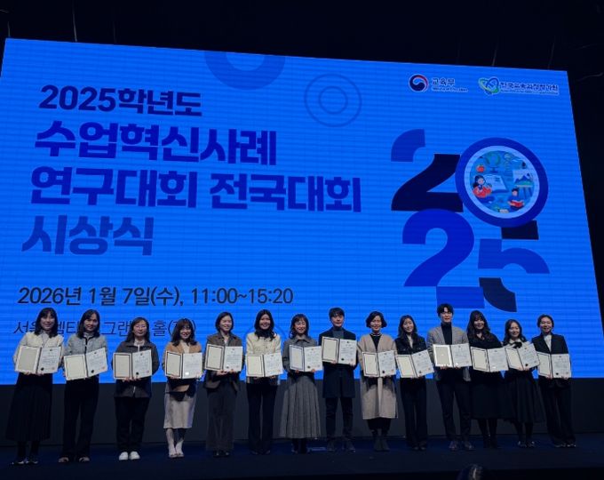 한편, ‘2025년도 수업혁신사례 연구대회’ 시상식은 1월 7일 오전 11시 서울 서초구 엘타워에서 개최됐으며, 1등급 수상 교사별 연구 주제는 다음과 같다.