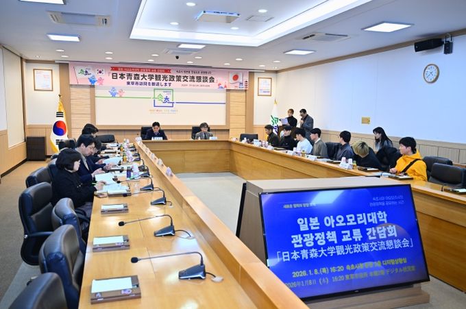 [ 중앙뉴스미디어 ] 속초시가 2026년 1월 8일 일본 아오모리대학 관계자들과 관광정책 간담회를 열고, 속초시와 일본 아오모리시 간 관광 교류 협력방안을 논의했다. 이날 아오모리대학 교수와 학생 등 8명이 속초시를 방문했다.