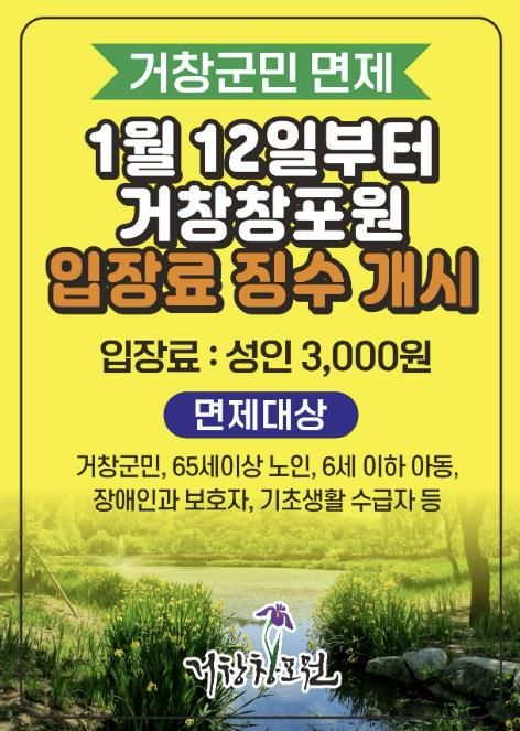 이번 입장료 징수는 '거창군 거창창포원 지방정원 관리 및 운영 조례'에 따른 것으로, 거창군민을 제외한 외부 방문객을 대상으로 징수할 계획이다.