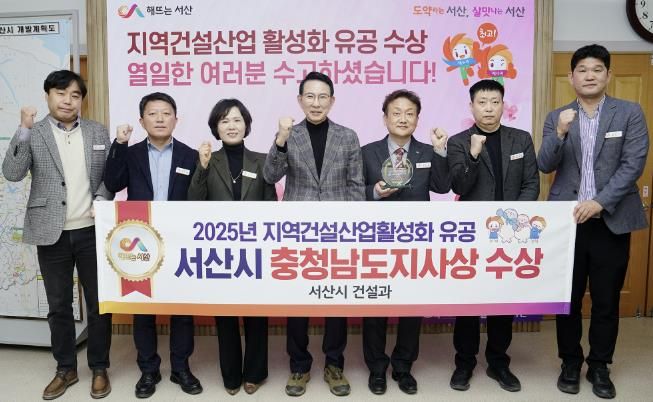 [ 중앙뉴스미디어 ] 충남 서산시가 지난 2025년 지역건설산업 활성화에 기여한 공로를 인정받아 충남도로부터 지역건설산업 활성화 우수기관에 선정됐다고 밝혔다.