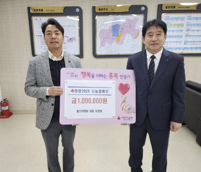 한편, 희망2026 나눔캠페인은 지역 내 취약계층을 지원하고 나눔과 연대의 사회적 가치를 확산하기 위한 범국민 나눔 운동으로, 현재 홍북읍에서는 총 85건, 47,357,000원의 성금이 모금되는 등 지역사회의 따뜻한 나눔 참여가 지속되고 있다.