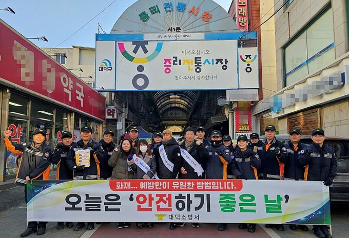 [ 중앙뉴스미디어 ] 대전소방본부(본부장 김문용)는 14일 겨울철 전통시장 화재를 예방하고 안전한 시장 환경을 조성하기 위해, 관내 5개 소방서와 함께 전통시장 화재예방 캠페인을 실시하는 등 안전관리 강화에 나섰다.