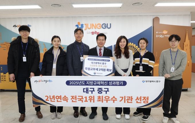 [ 중앙뉴스미디어 ] 대구 중구는 행정안전부가 주관한 ‘2025년 지방규제혁신 성과평가’에서 2년 연속 최우수 기관으로 선정되며 규제혁신 선도 도시로서의 위상을 다시 한번 입증했다.