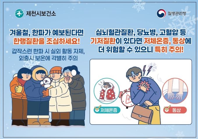 겨울철 건강관리와 관련한 자세한 사항은 제천시 보건소 방문건강팀으로 문의하면 된다.
