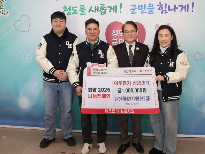 청도인적자원개발학과는 청도군이 지원하고 대구한의대학교가 함께하는 전국 최초 지역학과로 지역 발전을 위한 전문 인재 양성과 평생학습 문화 확산에 힘쓰고 있으며, 학생들이 배움을 통해 얻은 긍정적인 에너지를 지역의 어려운 이웃과 나누기 위해 희망2026 나눔캠페인 이웃돕기 성금 기탁을 결정했다.