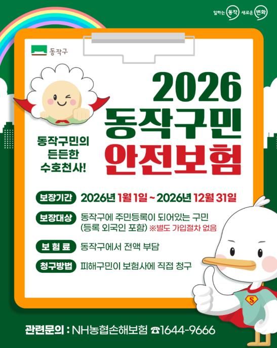 [ 중앙뉴스미디어 ] 동작구는 2026년부터 ‘구민안전보험’을 확대 운영한다고 19일 밝혔다.