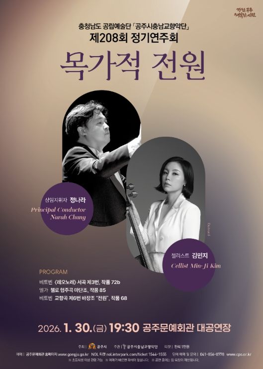 [ 중앙뉴스미디어 ] 충청남도 공립예술단 공주시충남교향악단은 오는 1월 30일19시 30분, 공주문예회관 대공연장에서 ‘목가적 전원’을 부제로 2026년 시즌의 첫 정기공연의 문을 연다.