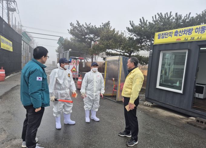[ 중앙뉴스미디어 ] 김제시 농업기술센터는 지난 16일 방역 최일선인 용지 산란계 밀집단지‘거점소독시설, 통제초소, 알 환적장’을 방문해 조류인플루엔자(AI) 확산 차단을 위한 차량 및 대인 소독 상황과 소독시설의 정상 작동 여부 등 방역상황을 점검하고 초소 현장 근무자들을 격려했다고 밝혔다.