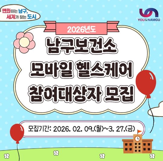 자세한 사항은 남구보건소 ‘모바일 헬스케어팀’으로 문의하면 된다.