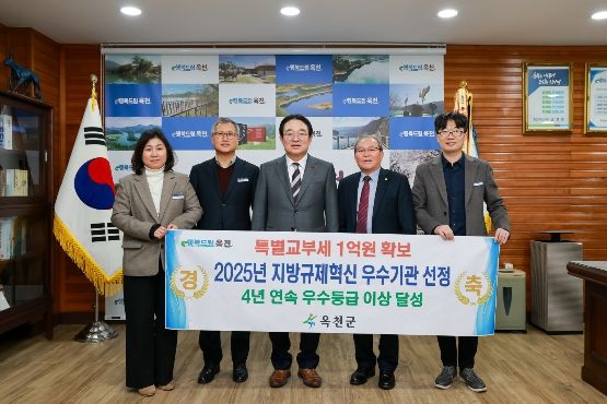 [ 중앙뉴스미디어 ] 옥천군은 행정안전부가 주관하는‘2025년 지방규제혁신 추진성과 평가’에서 4년 연속 우수기관으로 선정돼 특별교부세 1억 원을 확보하는 성과를 거두었다고 밝혔다.