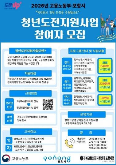 참여 신청은 경북고용성장지원센터 포항지점을 통한 유선 접수 또는 고용24를 통해 온라인 접수도 가능하다.