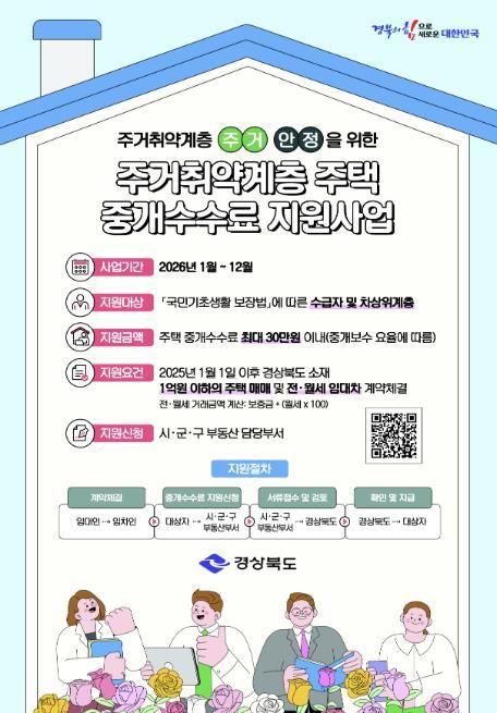 [ 중앙뉴스미디어 ] 상주시는 주거 취약계층의 경제적 부담을 완화하고 안정적인 주거환경 조성을 위하여 2026년 1월부터 “주거 취약계층 주택 중개보수 지원사업”을 시행한다.