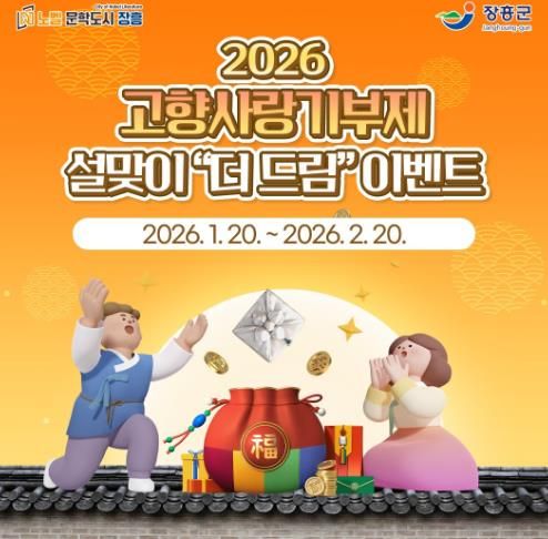 [ 중앙뉴스미디어 ] 장흥군은 설 명절을 앞두고 고향사랑기부제 활성화를 위해 1월 20일부터 2월 20일까지 ‘2026 설맞이 고향사랑기부제 더 드림 이벤트’를 진행한다.