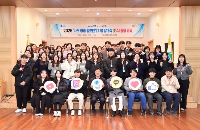 [ 중앙뉴스미디어 ] 청송군은 직원들이 직접 SNS 홍보에 참여하는 2026년 ‘나도 청송 홍보맨’ 발대식 및 AI 활용 교육을 21일 청송문화예술회관 소공연장에서 개최했다.