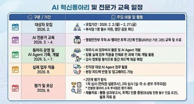 시는 전 부서별 대표 직원 84명이 참여하는 ‘인공지능(AI) 혁신동아리’를 구성하고, 오는 2월부터 9월까지 8개월간 본격적인 운영에 들어간다.