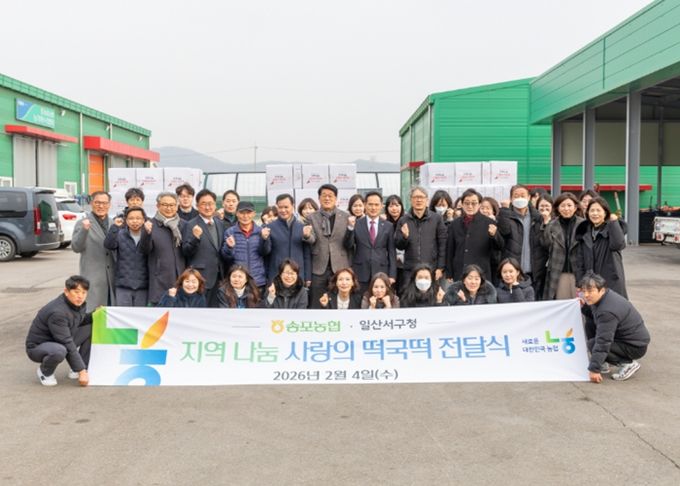 [ 중앙뉴스미디어 ] 고양특례시 일산서구는 지난 4일 송포농협과 설 명절맞이 ‘사랑의 떡국떡’ 전달식을 열고, 떡(4kg) 500박스를 전달받았다고 5일 밝혔다.