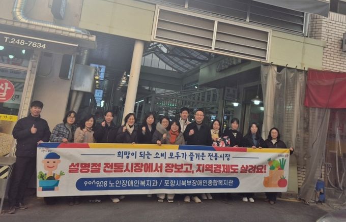 [ 중앙뉴스미디어 ] 포항시 노인장애인복지과는 지난 6일 북부장애인종합복지관 직원들과 함께 장량성도시장에서 ‘설맞이 전통시장 장보기 행사’를 진행했다.