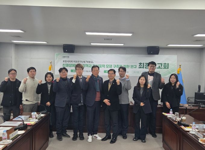 김영헌 대표 의원은 “이번 연구는 단순한 신재생에너지의 보급을 넘어 포항의 근간인 수산업과 해상풍력이 어떻게 조화롭게 공존할 수 있을지에 대한 깊은 고민의 결과”라며, “보고회에서 제시된 다양한 정책 제언들이 시정에 적극 반영돼 포항시가 탄소중립 실현과 지역 경제 활성화라는 두 마리 토끼를 잡을 수 있도록 의회 차원에서도 최선을 다하겠다”라고 밝혔다.