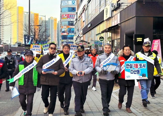 이날 캠페인에는 다산행정복지센터를 비롯해 남양주남부경찰서, 다산1지구대, 다산1동 통장협의회·주민자치회·체육회·자율방범대·다산해병자율방범대·생활안전협의회·걷기지회 등 민·관·경 90여 명이 참여했다. 112 신고 접수가 잦은 다산역 주변 거리와 선형공원 일대 상가 밀집 지역을 중심으로 합동 순찰을 진행했다.