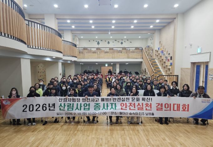 [ 중앙뉴스미디어 ] 진주시는 지난 10일 ‘월아산 숲속의 진주’의 달음홀에서 산림사업 공무직·기간제근로자 162명을 대상으로 산업안전 보건교육과 안전 실천 결의대회를 가지는 등 ‘안전사고 근절’을 위해 최선을 다하고 있다.