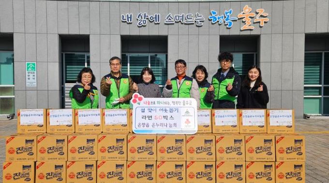 [ 중앙뉴스미디어 ] 온누리나눔회가 11일 설 명절을 맞아 울주군 온양읍 행정복지센터에 라면 50박스를 기탁했다.