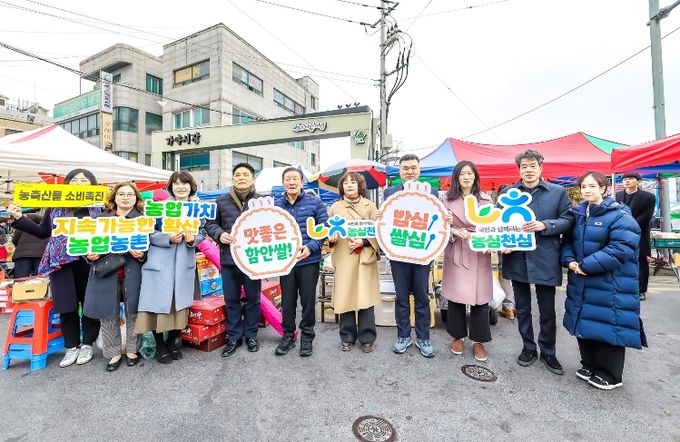 이날 조 군수는 1월에 부임한 박상근 엔에이치(NH)농협은행 함안군지부장, 홍순기 가야전통시장상인회 회장, 군 간부공무원 등과 함께 시장을 둘러보며 현장 목소리를 청취했다.