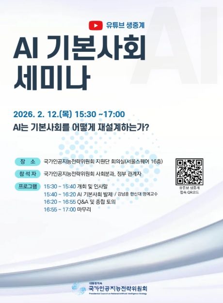 [ 중앙뉴스미디어 ] 국가인공지능전략위원회는 2월 12일 오후 3시 30분부터 AI 기본사회 세미나를 개최한다. 이번 세미나는 AI 기술 확산이 노동ㆍ복지ㆍ분배ㆍ사회안전망 등 경제ㆍ사회 정책 전반에 미치는 영향을 종합적으로 살펴보고, AI 시대에 부합하는 기본사회 제도 설계 방향에 대한 시사점을 도출하기 위해 마련됐다. 특히 AI 기술의 확산에 따라 부와 생산수단이 특정 주체에 집중됨과 동시에 고용ㆍ소득 양극화를 포함한 구조적 변화가 예상되는 상황에서, 기본사회 정책이 어떤 역할과 방향성을 갖고 추진되어야 하는지에 대한 심도 있는 논의가 진행될 예정이다.
