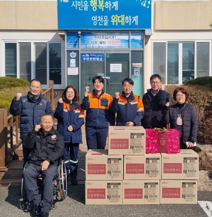 [ 중앙뉴스미디어 ] 영천시 자양면은 12일 자매결연을 맺은 포스코 에너지부 동력 섹션에서 설 명절을 맞아 어르신들을 위한 차 선물세트 30박스를 기탁했다고 밝혔다.
