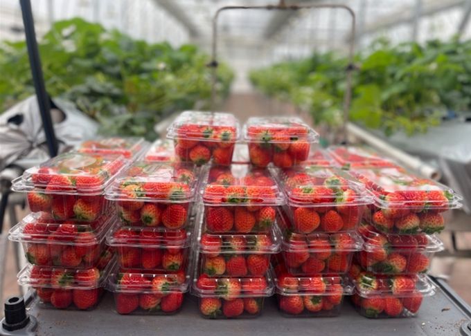 기부 대상 딸기는 센터 내 스마트팜 실증시험포에서 재배 중인 ‘설향’과 ‘고슬’ 품종이다.