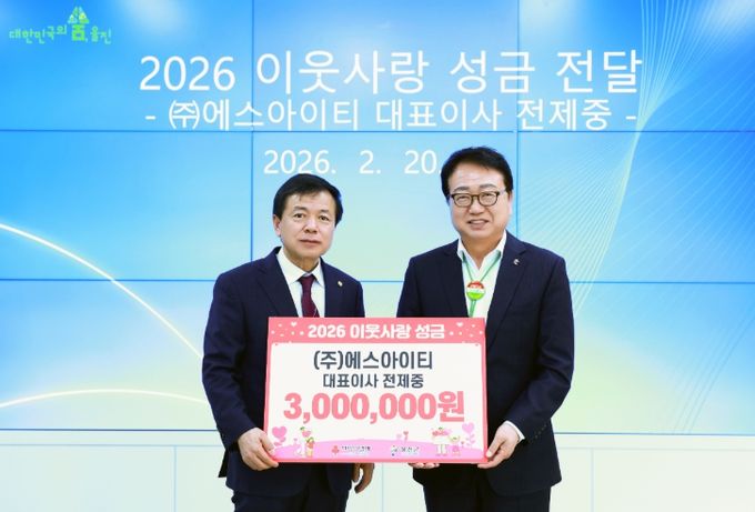 [ 중앙뉴스미디어 ] 울진군은 지난 2월 20일 ㈜에스아이티 전제중 대표이사로부터 성금 300만 원을 전달받았다.