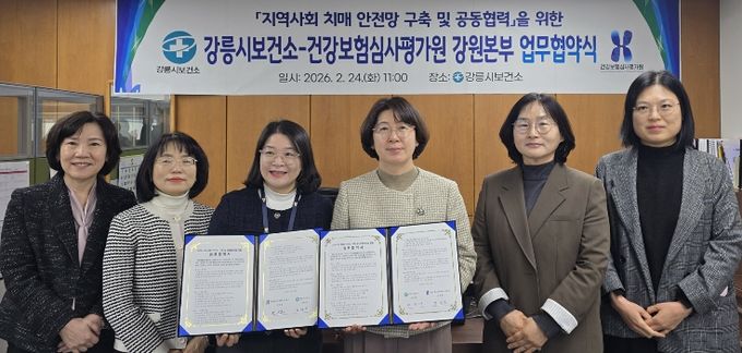 [ 중앙뉴스미디어 ] 강릉시보건소(보건소장 권혁여)는 지난 24일 건강보험심사평가원 강원본부(본부장 정선호)와 지역사회 치매 안전망 구축 및 공동 협력을 위한 업무협약을 체결했다.