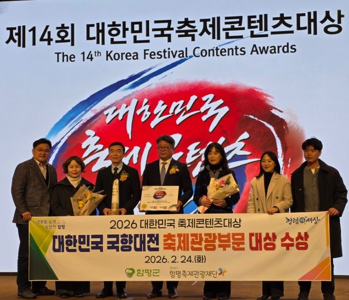 함평군은 “이날 오후 서울 피스앤파크 컨벤션센터에서 열린 ‘2026 대한민국 축제 콘텐츠 대상’에서 함평군이 축제관광부문 대상을 수상했다”고 24일 밝혔다.