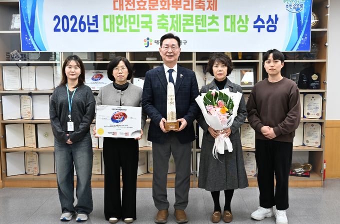 [ 중앙뉴스미디어 ] 대전 중구는 지난 24일 서울 피스앤파크 컨벤션센터에서 열린 2026년 제14회 대한민국 축제콘텐츠 대상 시상식에서 대전효문화뿌리축제가 축제 문화유산·역사 부문 대상을 수상했다고 밝혔다.