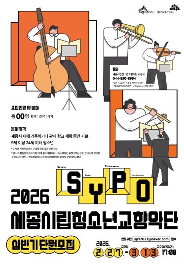 [ 중앙뉴스미디어 ] 세종시립청소년교향악단이 27일부터 내달 13일까지 지역예술을 선도하는 예술단으로 함께 성장할 참신하고 실력 있는 2026년 신규단원을 모집한다.