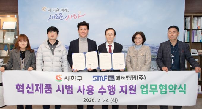 [ 중앙뉴스미디어 ] 부산 사하구는 에쓰엠팹㈜(대표 김재일 동아대학교 신소재공학과 교수)와 지난 24일 조달청 혁신제품 시범사용 지원을 위한 업무협약(MOU)을 체결했다. 이번 협약은 에쓰엠팹㈜가 개발한 동파 방지 제품 ‘안(安)동파’ 수도꼭지를 한파 취약계층 가구와 복지시설 등에 설치해 겨울철 한파로 인한 수도시설 동파 피해를 예방하기 위해 추진됐다.