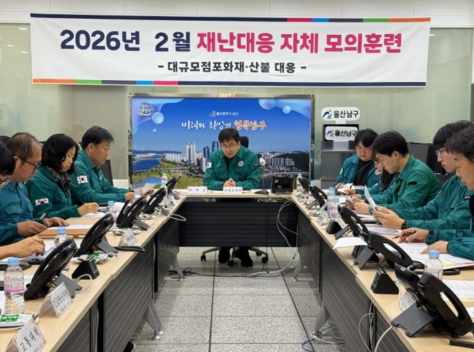 [ 중앙뉴스미디어 ] 울산 남구는 26일 재난대응 역량 강화를 위해 ‘2월 재난대응 자체 모의훈련’을 남구청 재난안전상황실에서 실시했다.