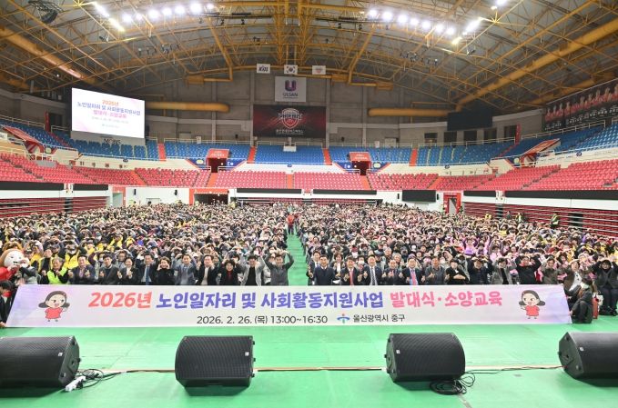 [ 중앙뉴스미디어 ] 울산 중구가 2월 26일 오후 1시 동천체육관에서 2026년 노인일자리 및 사회활동지원사업 발대식·소양교육을 진행했다.