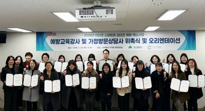 [ 중앙뉴스미디어 ] 대구광역시는 2월 26일 시민들의 디지털 과의존을 예방하고 건전한 정보문화 확산을 이끌 ‘2026년 인터넷·스마트폰 과의존 예방교육강사 및 가정방문상담사 위촉식’을 개최했다.
