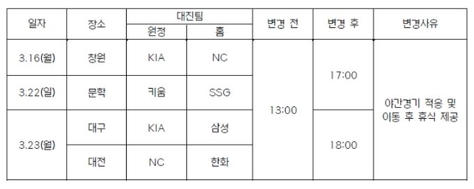 KBO 시범경기 개시 시간 변경