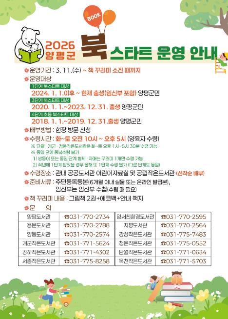 [ 중앙뉴스미디어 ] 양평군은 오는 11일부터 ‘2026년 북스타트 사업’을 본격 운영한다고 밝혔다.