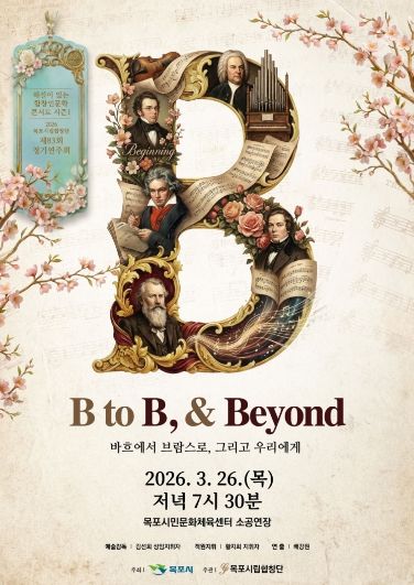 [ 중앙뉴스미디어 ] 목포시립합창단(예술감독 겸 상임지휘자 김선희)이 오는 3월 26일 오후 7시 30분, 목포시민문화체육센터 소공연장에서 제83회 정기연주회 'B to B & Beyond(Bach to Brahms) : 해설이 있는 합창인문학콘서트 시즌1'을 개최한다.