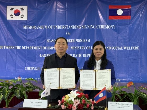 [ 중앙뉴스미디어 ] 청주시는 4일(현지시간) 라오스 노동사회복지부와 외국인 계절근로자 도입을 위한 업무협약(MOU)을 체결했다.