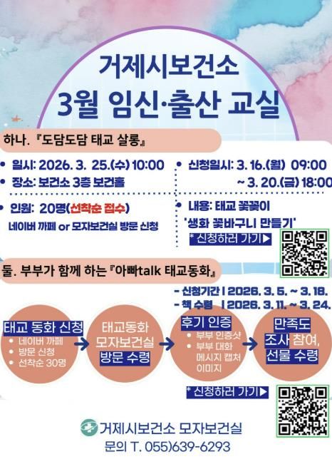 [ 중앙뉴스미디어 ] 거제시는 임신·출산 친화적 환경을 조성하고 임산부의 건강한 출산 준비를 지원하기 위해 2026년 '도담도담 임신·출산교실' 운영을 시작한다.
