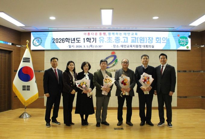 [ 중앙뉴스미디어 ] 충청남도태안교육지원청은 3월 5일 태안교육지원청 대회의실에서 관내 유‧초‧중‧고 교장(원장), 교육지원청 담당자 60명이 참석한 가운데 2026학년도 1학기 유‧초‧중‧고 교장(원장) 회의를 개최했다.